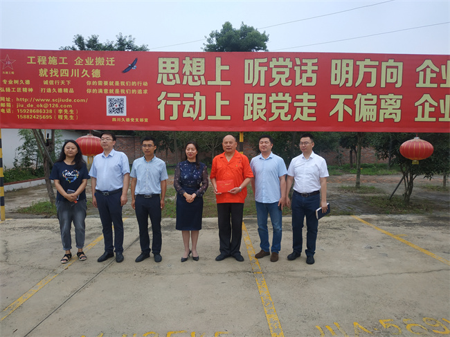 2021年6月24日,龙泉驿区委常委付敏同志一行深入四川久德地久建设公司党支部,走访慰问全区优秀党务工作者、四川久德地久建设工程有限责任公司董事长、总经理、党支部书记吴贡学同志,看望企业员工,并代表区委、区政府向党员致以节日的问候。区委统战部常务副部长叶开颜、同安街道党工委书记蔡康强、同安街道党工委副书记周刚、区委统战部机关党委书记罗瑷玲等出席了活动。