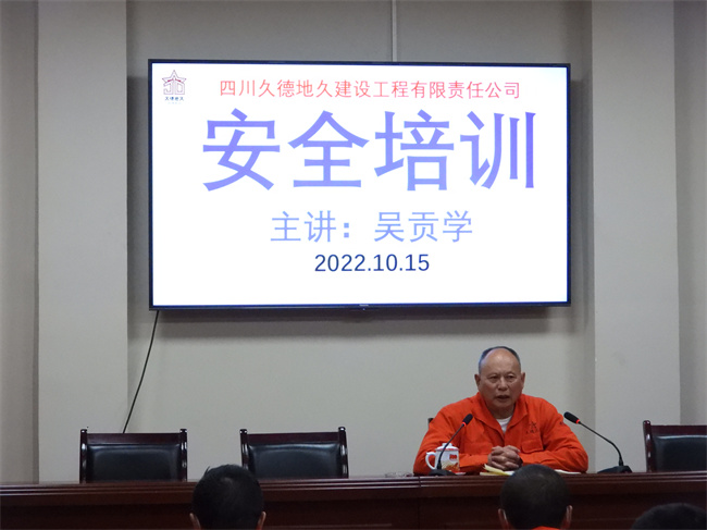 为进一步强化安全法规意识,杜绝安全事故,2022年10月15日,在四川久德地久建设工程有限责任公司会议室举办了安全法规、安全防范的专题知识讲座。会议特邀四川华川工业股份有限公司安全专家李良宏高工授课。公司董事长、党支部书记吴贡学;总经理涂继先等公司领导出席会议并讲话。
