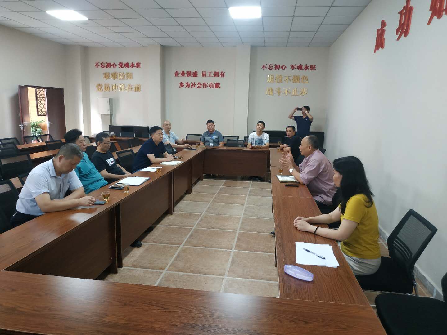 最后,王平同志作了讲话。王平同志提出了“谋定而后动”工作思路,建议吴书记参观先进单位的党建阵地后再来规划公司的阵地建设。并就如何提升党建阵地建设质量,提出了几点意见:一是要理清思路。二是企业文化要体现思想,要体现管理文化,要突出特色,比如,久德地久提出的退役不褪色就是一大亮点,要打造出久德特色。一声到,一生到。增加知党恩、报党恩板块,四川久德地久做了很多慈善,要在企业阵地中显示出来。