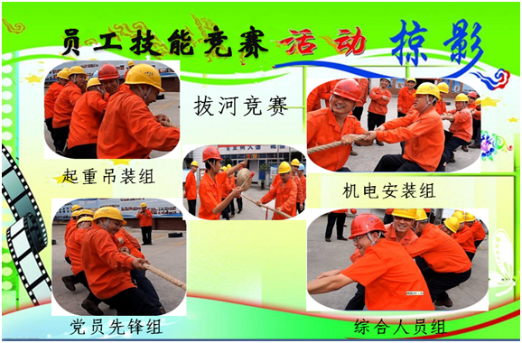 拔河比赛中,将公司员工分为党员先锋组、机电安装组、起重吊装组和综合人员组,采取淘汰赛的方式进行。