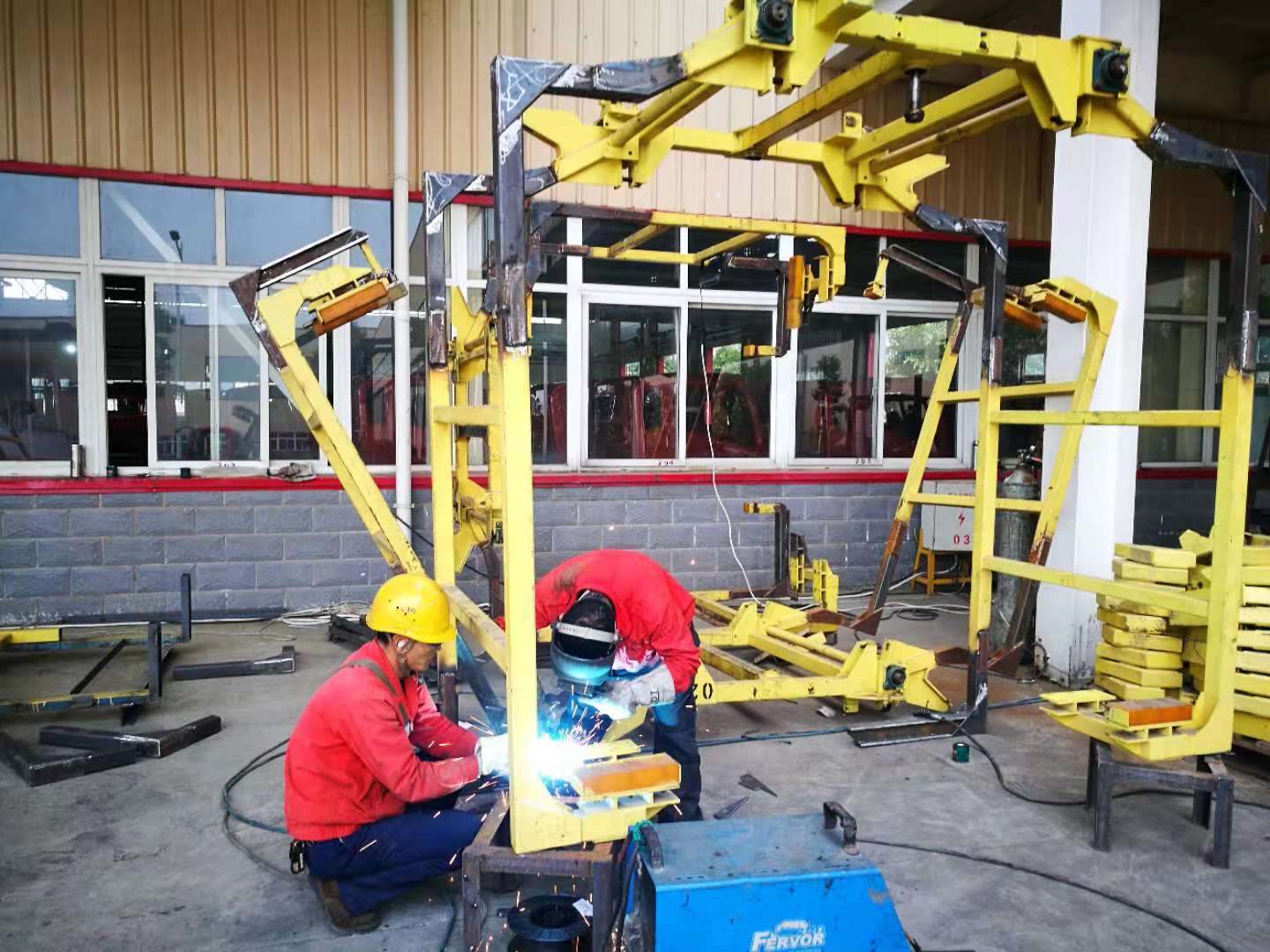 四川久德公司承接大运汽车公司的吊臂改造工作以来,为缩短工期,使甲方尽快投入生产,久德人吃住在工地,每天提前上班、推迟下班成常态,但同志们毫无怨言,充分体现了久德人顽强拼搏的意志和吃苦耐劳的精神。同时,久德人发扬创新精神,自制了定尺专用工装卡(下图左一),大大提高了作业效率,作业质量得到了有效保证。