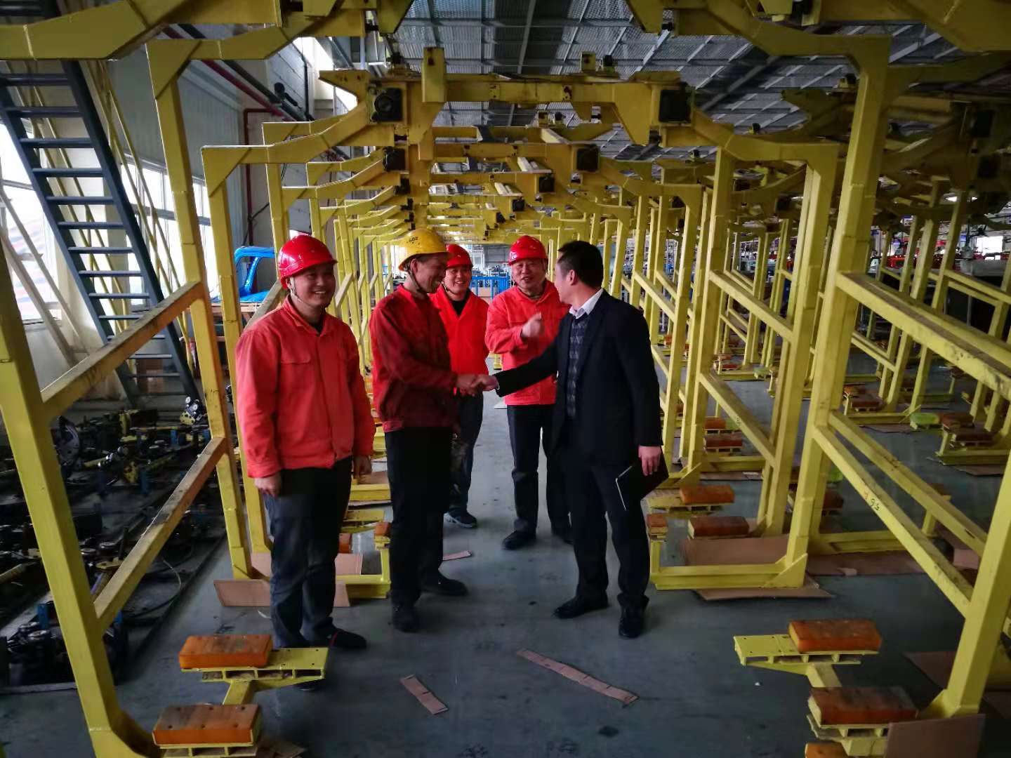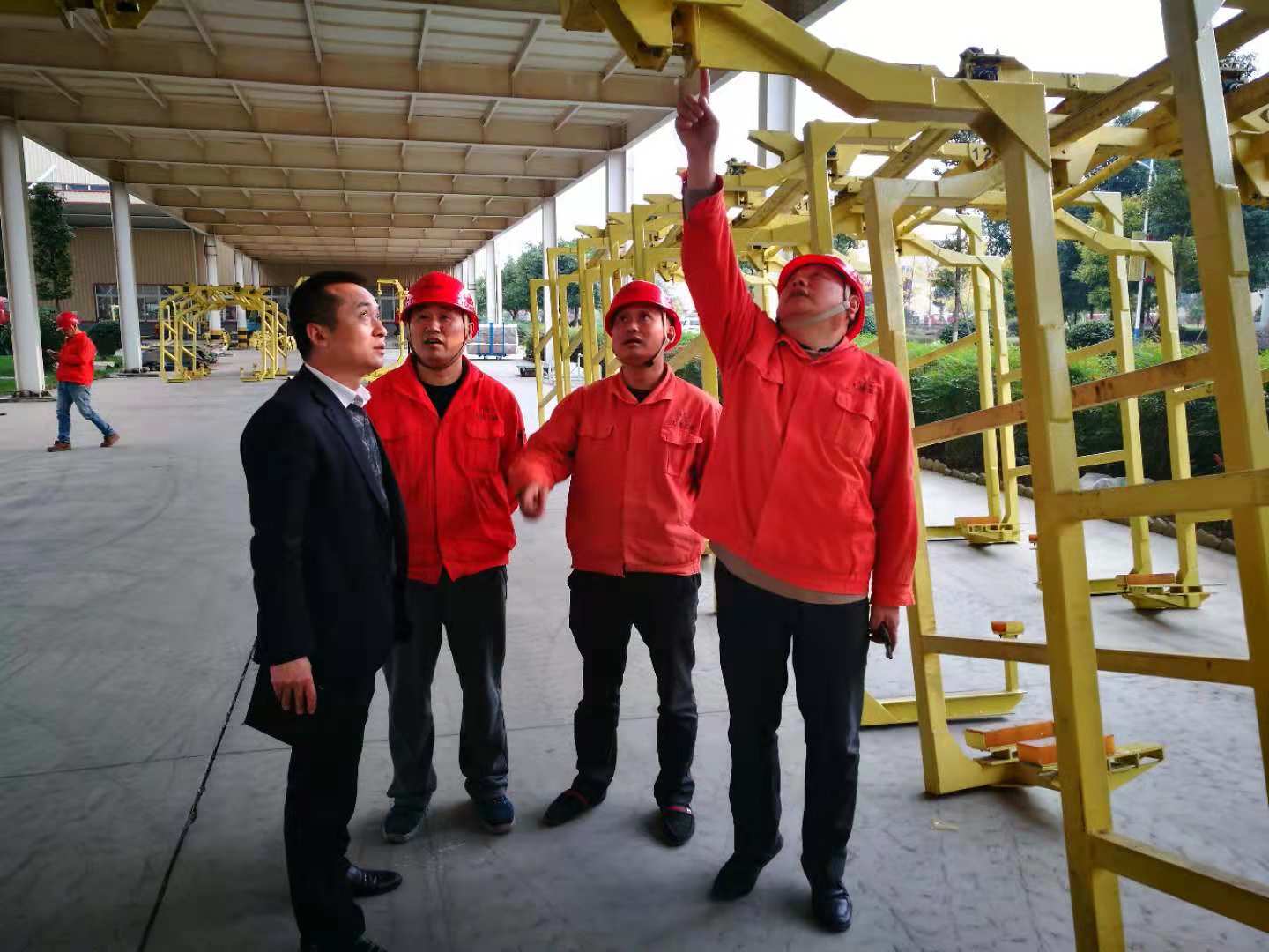 2018年11月12日,四川久德党支部书记吴贡学同志率副书记程国胜,副总经理程国凡,总工程师吴超,共产党员、工程部第一副部长龙明勇,宣传委员王华贵同志等到大运汽车、四联汽车施工现场,检查施工进度、工程质量、安全管理及劳动纪律落实情况,看望一线的同志们,并与大运汽车相关领导进行了工作磋商。