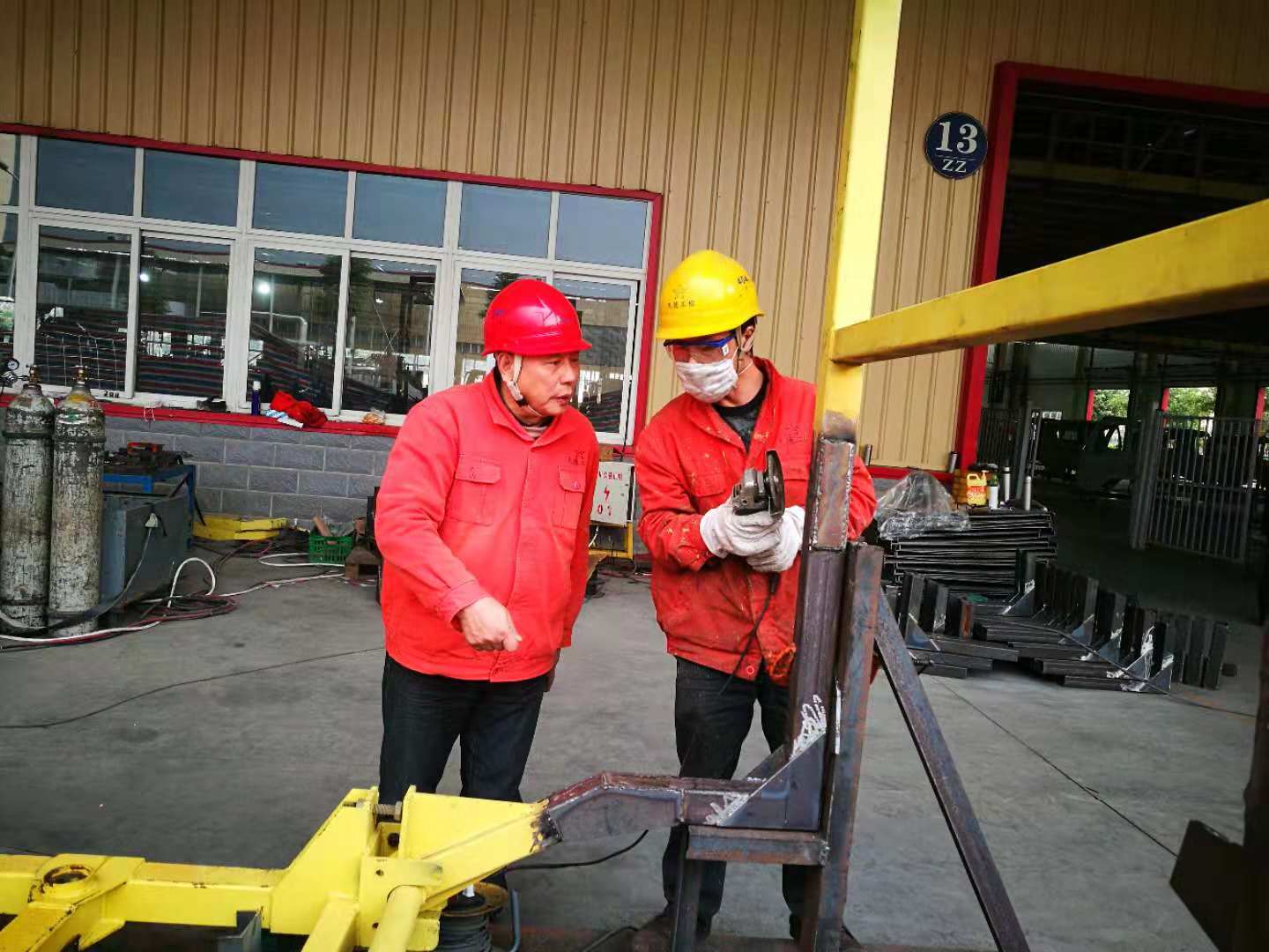 工程质量事关企业名声,四川久德公司把质量工作做到了常抓不懈。吴贡学书记率支部委员深入一线,检查工程质量。在大运汽车项目部,公司总工程师吴超、共产党员、工程部副部长龙明勇对各个焊接点进行了复检,对每个吊臂质量进行抽查。吴书记陪同大运汽车公司设备管理部张部长到施工现场和车间内部,分别检查了作业情况和已交付吊臂的运行情况,虚心听取甲方管理人员的意见。从反溃意见来看,反响很好,帮助甲方解决了他们生产中遇到的难题。
