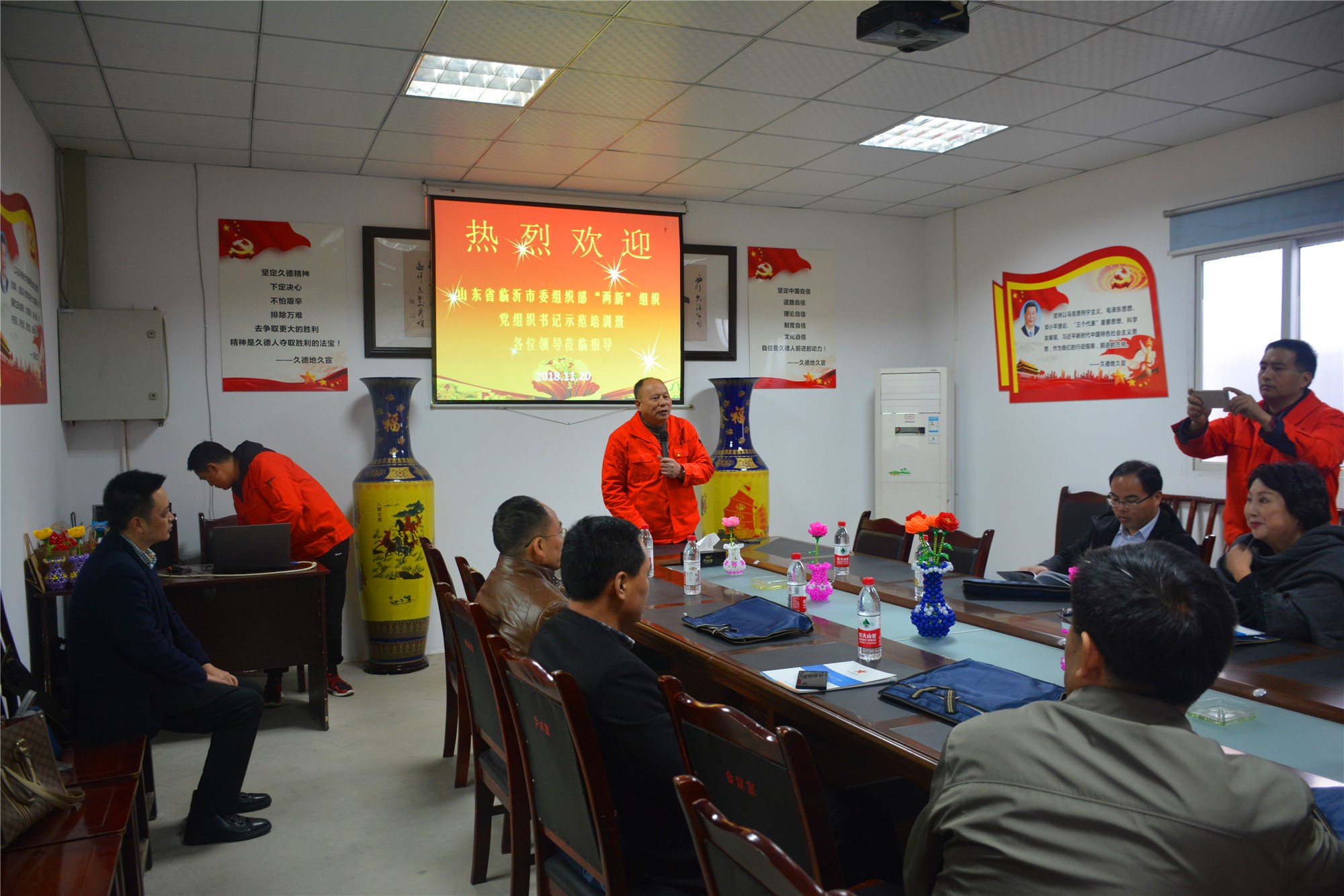 2018年11月20日,山东省临沂市委组织部“两新组织”党组织书记示范培训班赴四川久德公司党支部,实地考察交流党建工作。山东省临沂市委组织部、市工商联领导,山东省临沂市非公企业负责人、党组织书记及党务工作者近70人参加了会议。龙泉驿区委统战部副部长、区工商联党组书记黄旭东同志,区工商联副主席兼秘书长贺春蓝等同志出席了会议,黄旭东书记作了讲话。