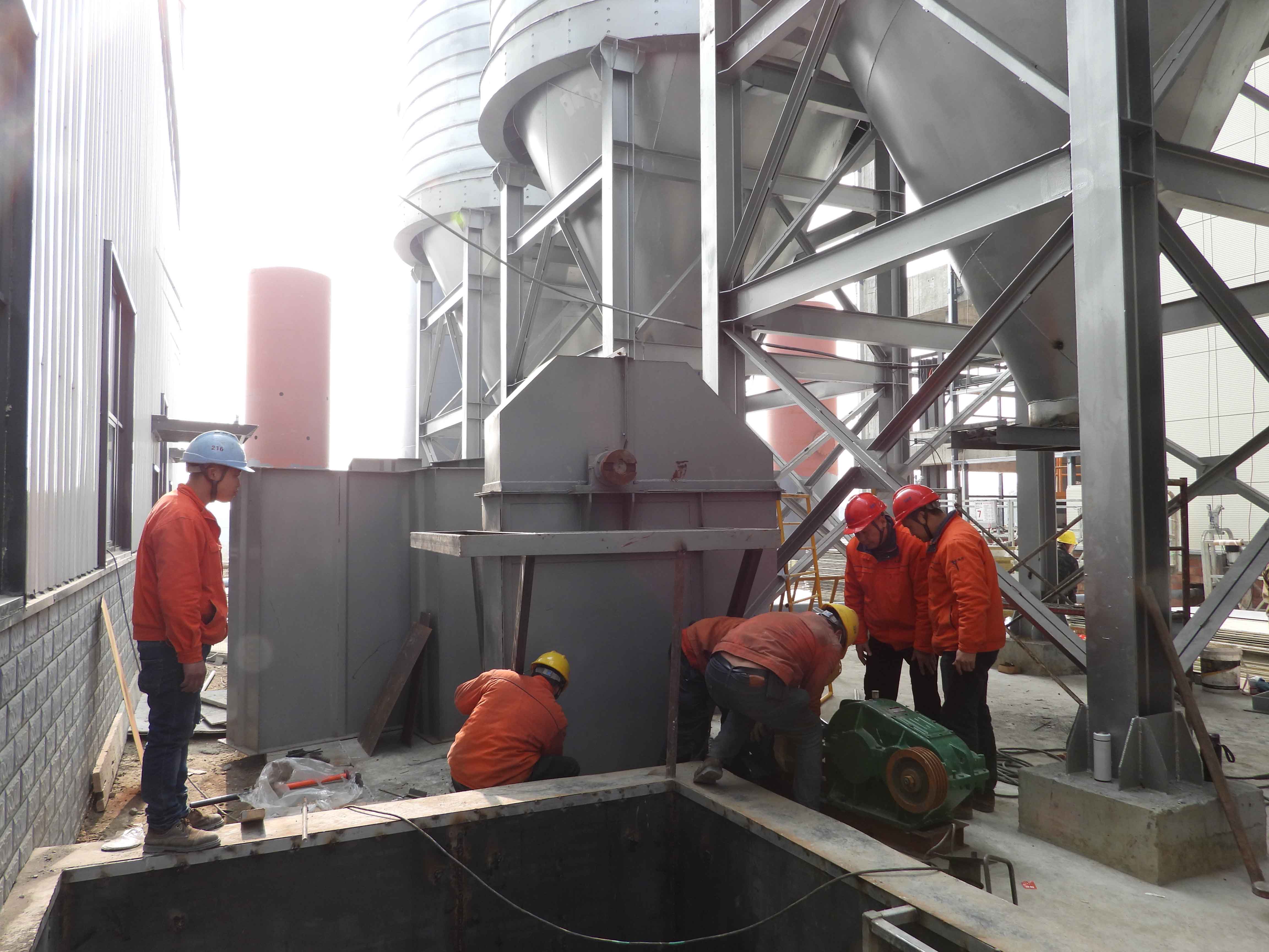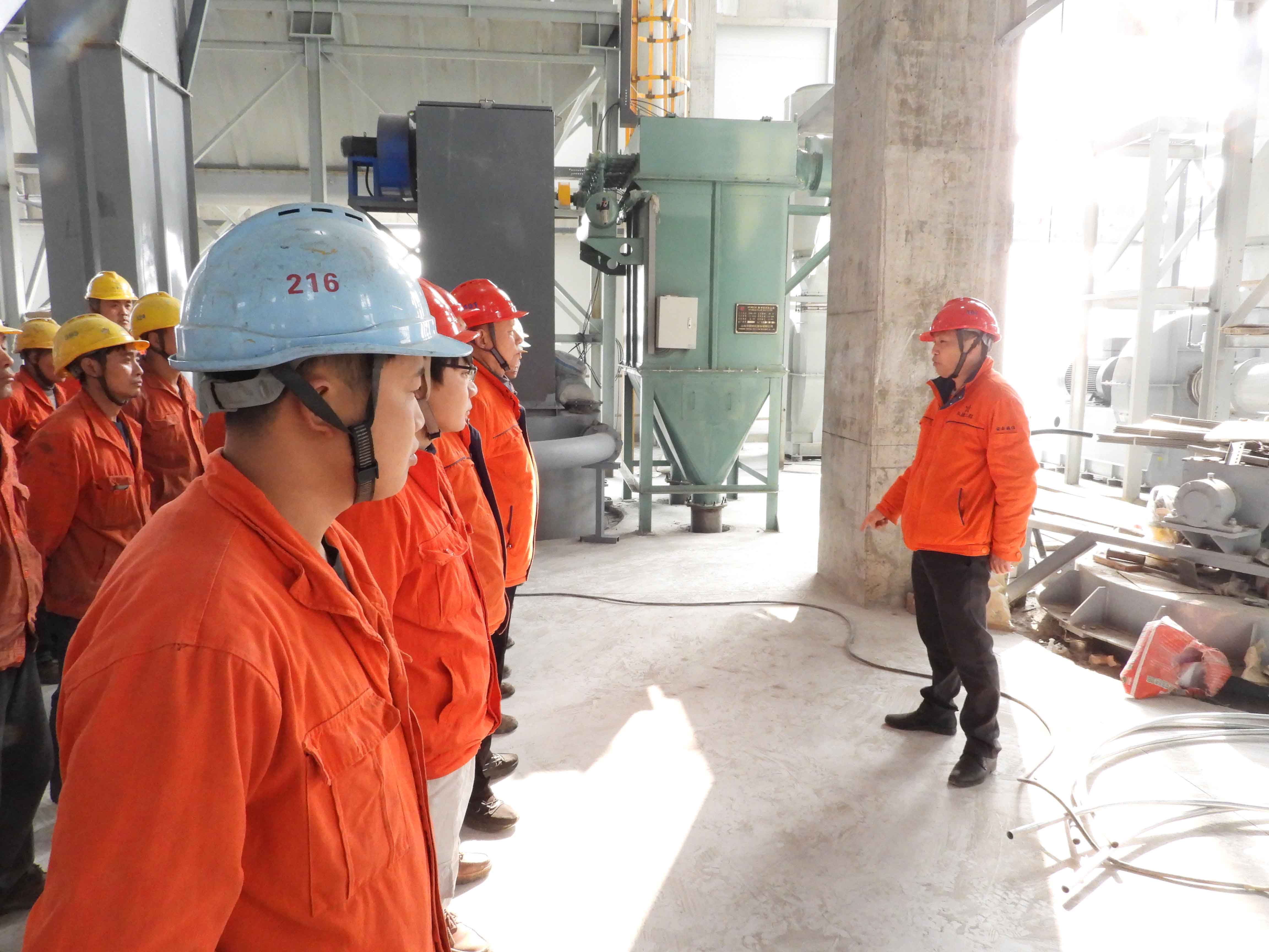 张永权汇报磨粉收集器和湿捏系统安装情况