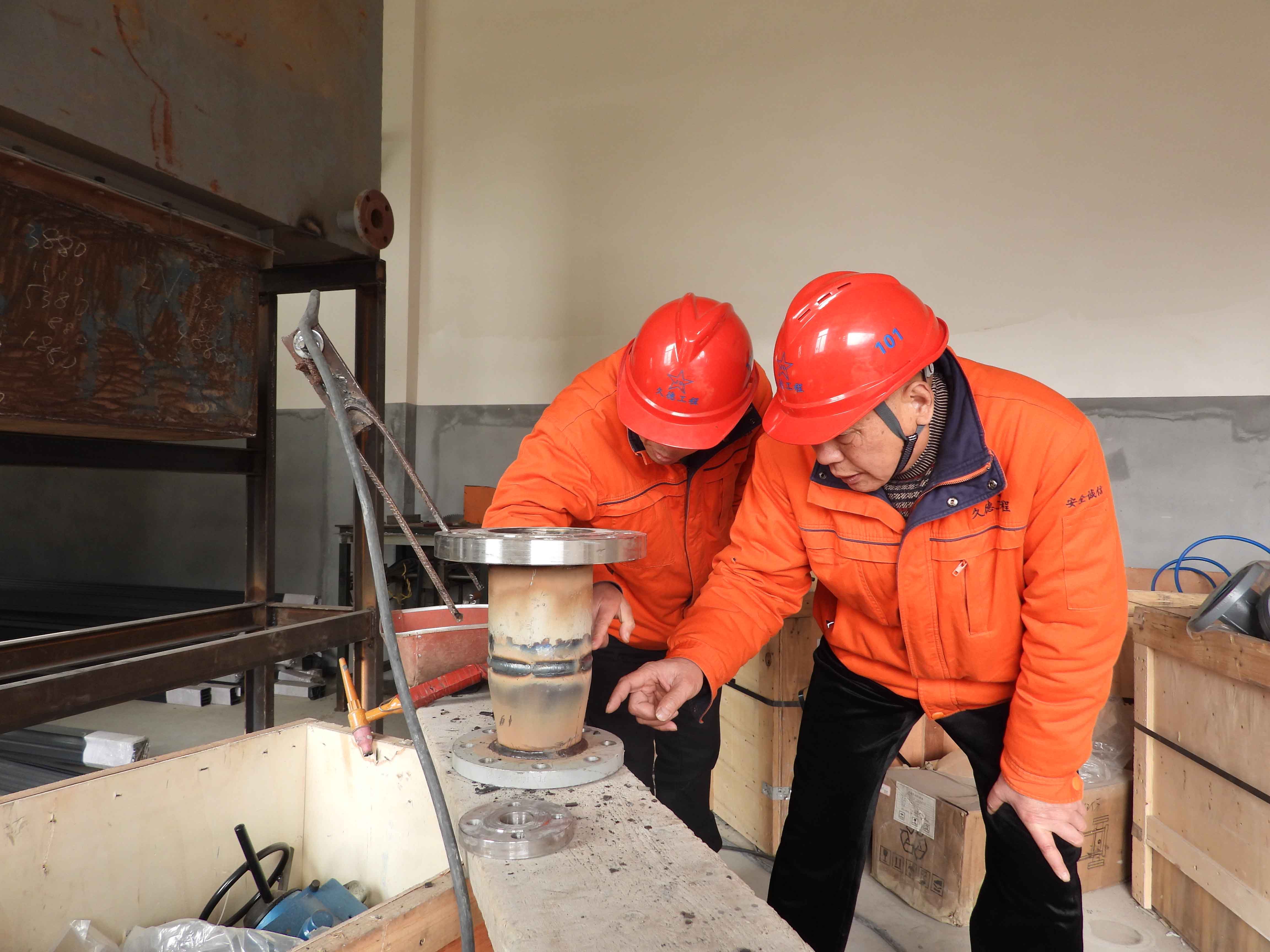 在施工现场,久德的工友们都在不停地忙碌着。都江堰施工项目包括设备安装、电气安装、管道制作等,虽然施工种类繁多,所需工种也很多,但久德公司有现成的实体队伍,完全有能力应对施工需求。项目负责人张永权说。