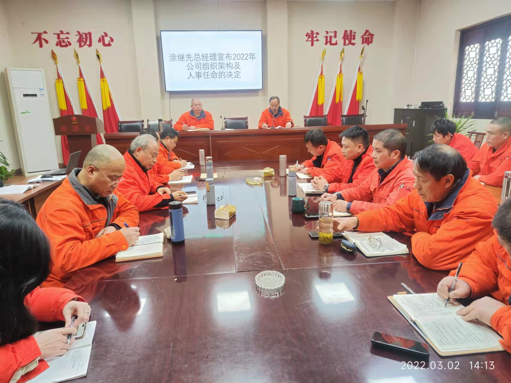 会议第二项议程是公司总经理涂继先同志宣布了《关于2022公司组织机构的设置及人事任命的通知》。